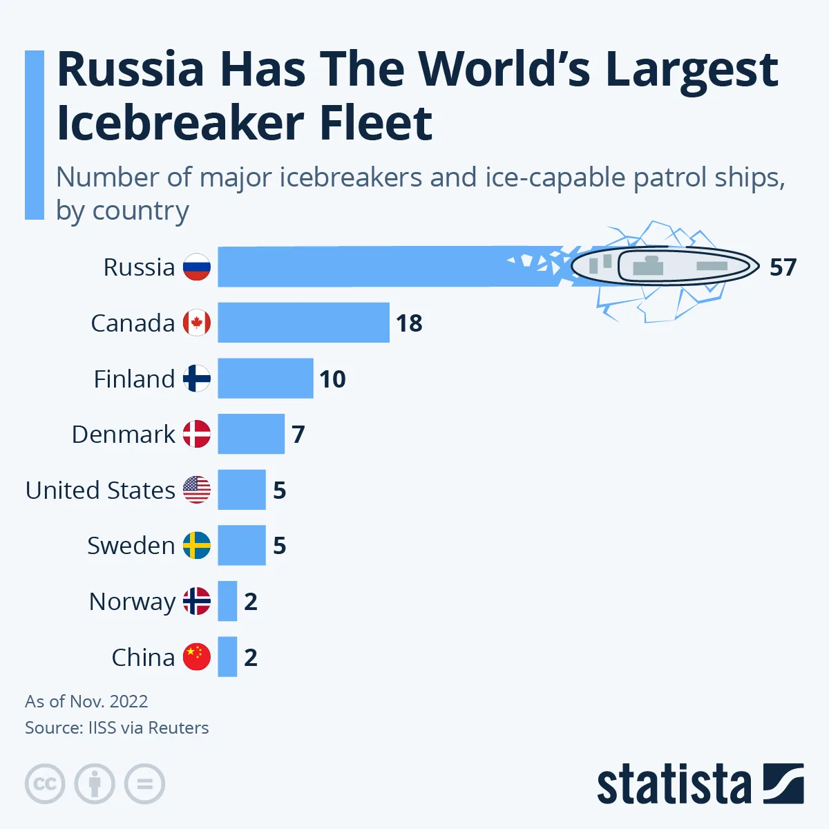 In the competitive arena of icebreaking capabilities, Russia has established itself as a leader. According to data compiled by the International Institute for Strategic Studies (IISS), Russia boasted a fleet of 57 icebreakers and ice-capable patrol ships as of 2022. This superior number greatly surpassed that of any other nation, highlighting Russia’s strategic positioning in Arctic waters.