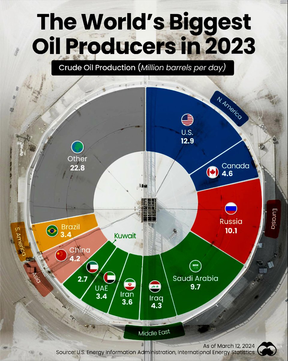 While these ten nations dominate, the “Other” category—including nations like Nigeria, Venezuela, and Angola—contribute an additional 22.8 million barrels per day, collectively forming a significant part of global supply.