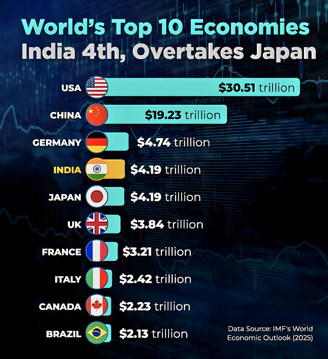 4. India Overtakes Japan to Claim Fourth Place with $4.19 Trillion