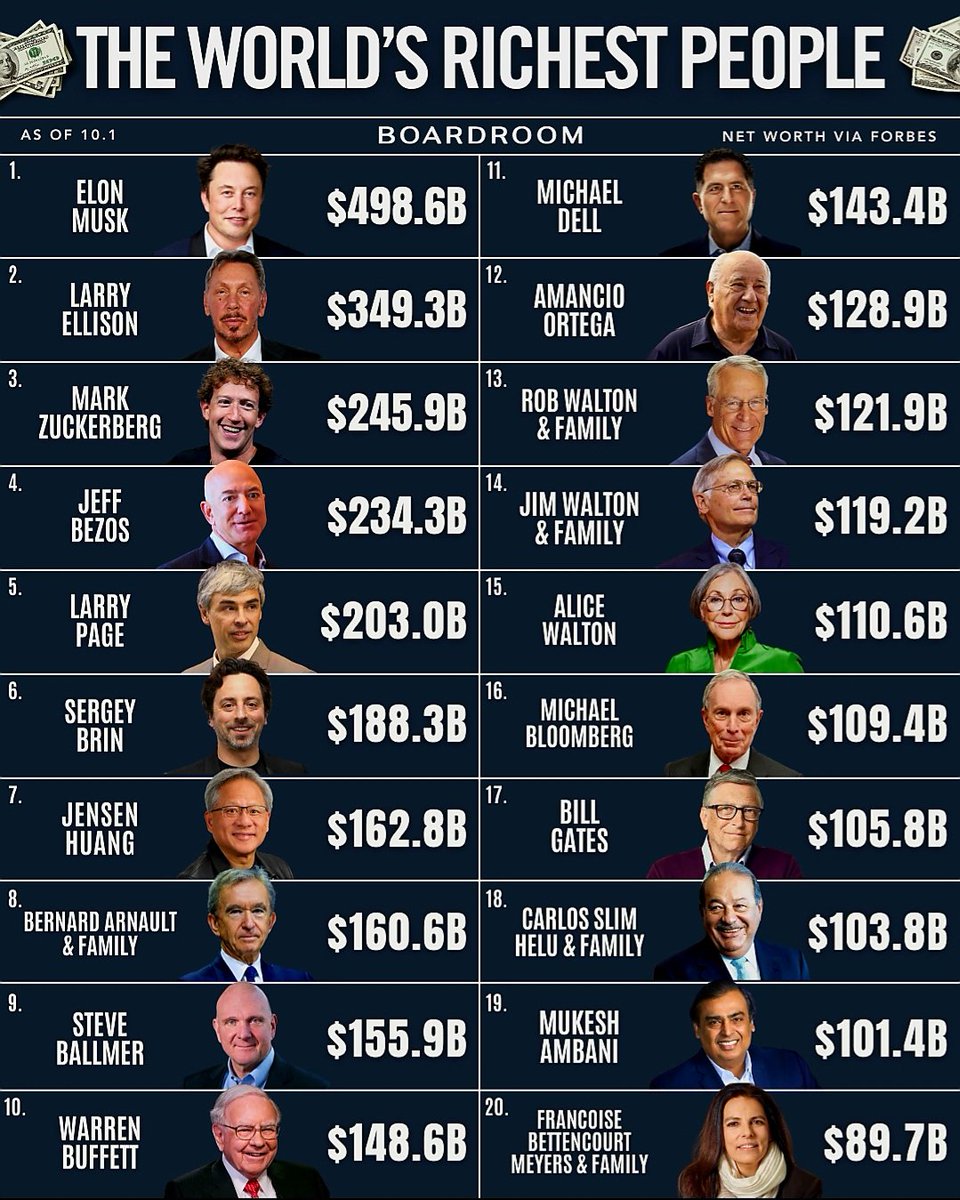 In 2025, the global landscape of wealth continues to evolve, showcasing a new lineup of billionaires and multimillionaires who dominate the financial scene. These entrepreneurs, investors, and innovators are shaping industries, influencing economies, and redefining what it means to be wealthy. Here’s an inside look at the individuals at the top of the wealth pyramid this year.