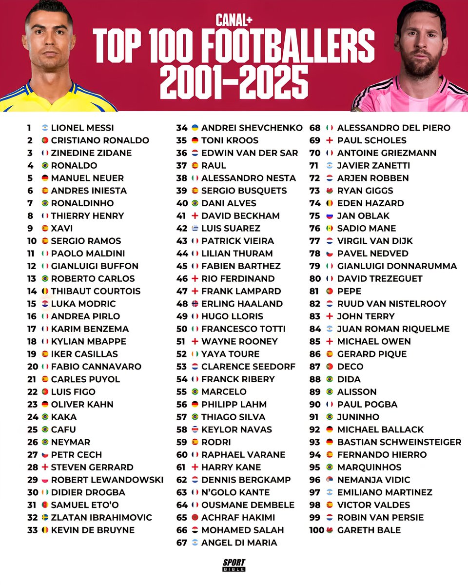 This curated list of the top 100 footballers from 2001 to 2025 paints a vivid picture of evolution, excellence, and enduring passion in the beautiful game. As new stars rise and legends continue to inspire, football remains a universal language bridging cultures and generations.