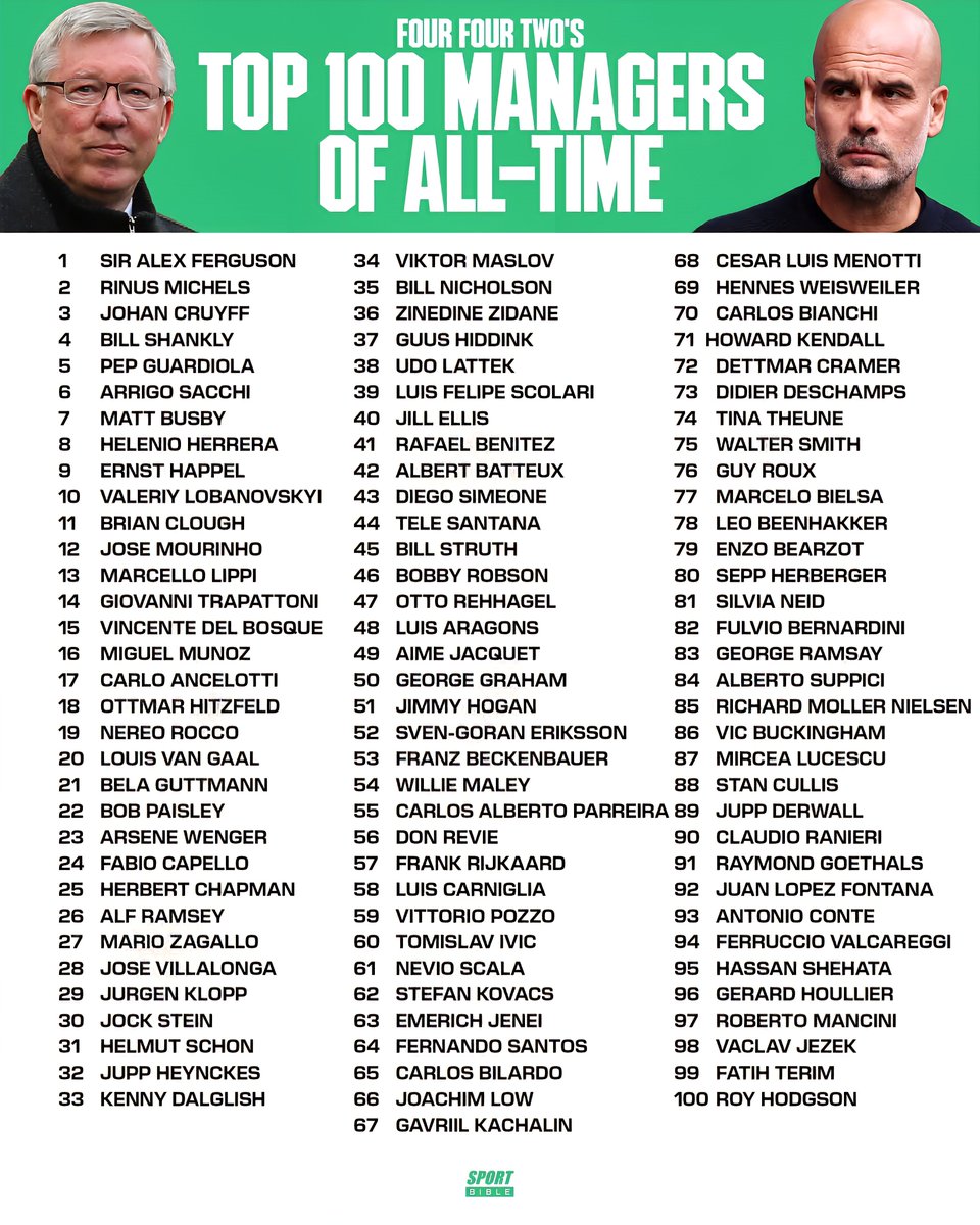 Top 100 Soccer Managers of All Time: 2025 Edition