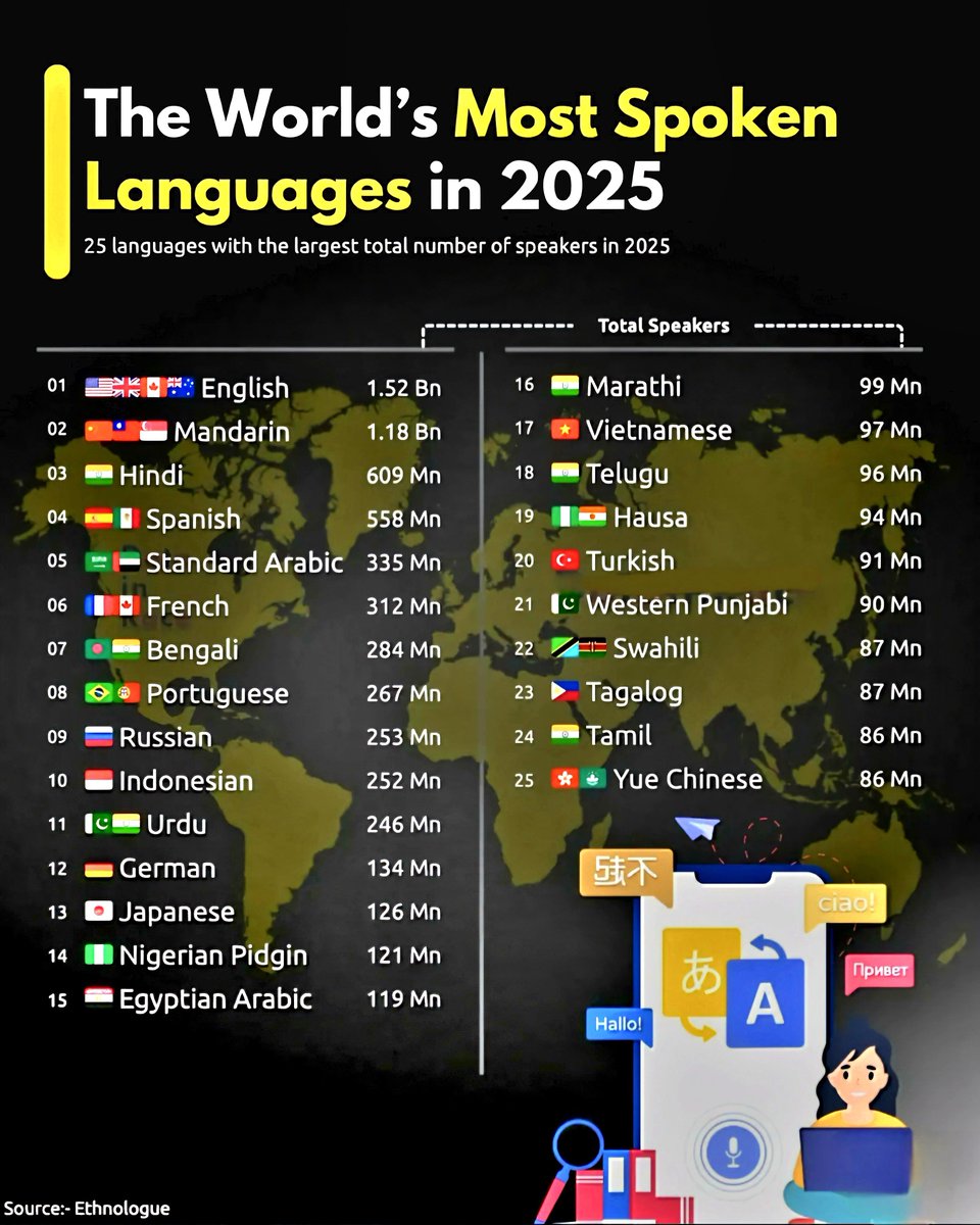 The 25 Most Spoken Languages in 2025: A Global Perspective