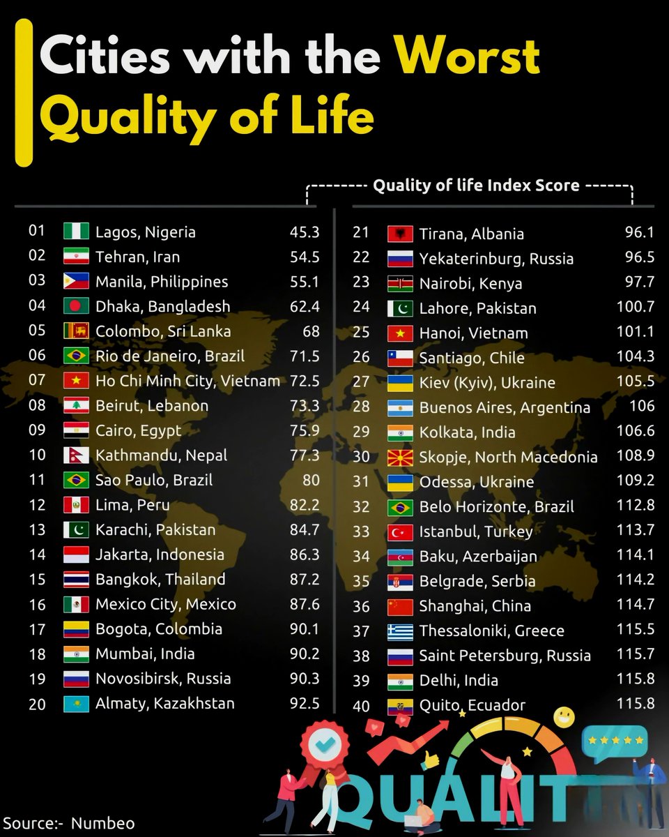 The 40 Cities Struggling the Most with Quality of Life in 2025