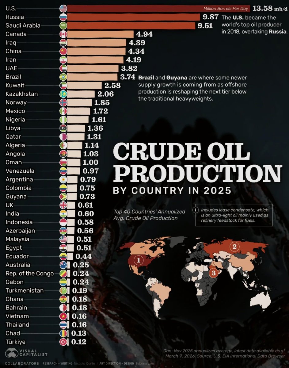 The above list reflects the latest data from the U.S. Energy Information Administration (EIA), based on annualized averages from January through November 2025. Despite ongoing global shifts toward renewable energy, these nations continue to play vital roles in shaping the world’s energy landscape.