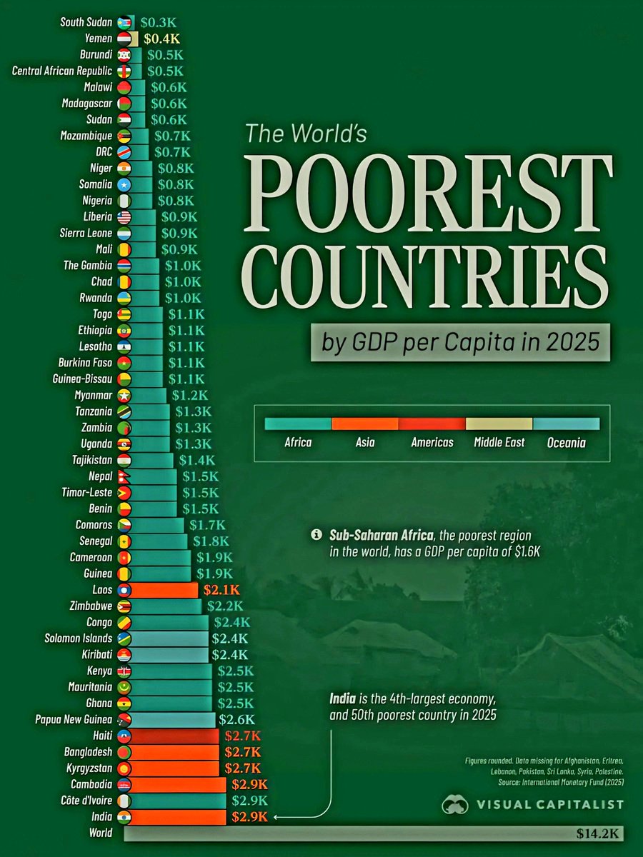 At the bottom of the list, South Sudan tragically remains the poorest nation globally, with a GDP per capita of just $300. Years of conflict and instability have hindered any substantial economic growth, keeping a large portion of the population in extreme poverty.