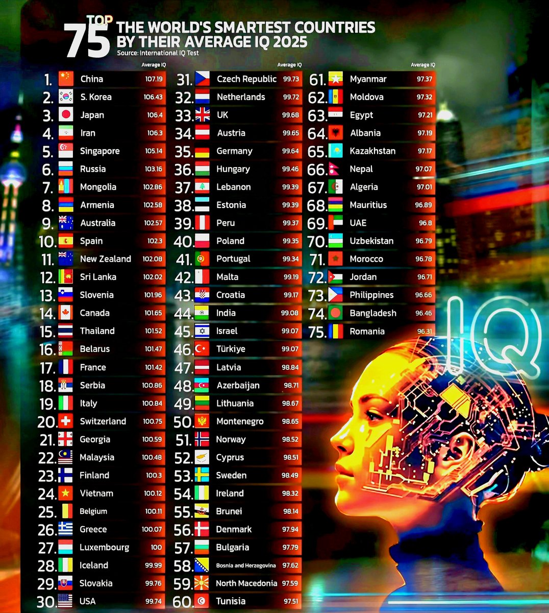 The list of countries with the highest average IQ scores in 2025 reflects a combination of education policies, cultural attitudes toward learning, and investments in research and innovation. While nations like Singapore, Hong Kong, and South Korea lead in cognitive metrics, many Western countries continue to invest in education and technology to sustain and improve their standings. Meanwhile, emerging economies such as India and Brazil show promising signs of growth, setting the stage for shifts in global rankings in the coming years.