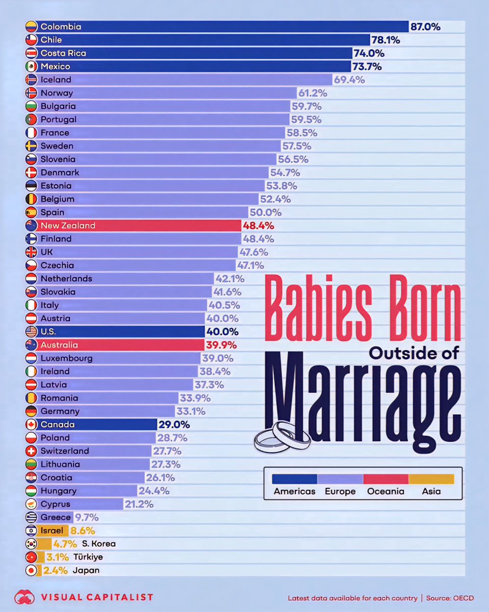 Top Countries with the Highest Rates of Babies Born Outside Marriage in 2025