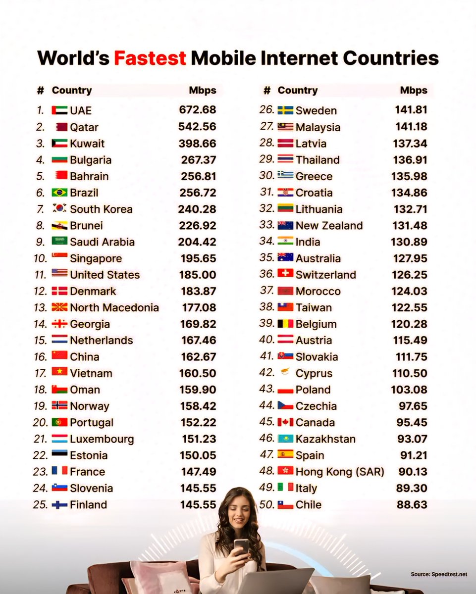 Source: SpeedTest.net – Data as of early 2025. For the most recent updates, visit the source directly.