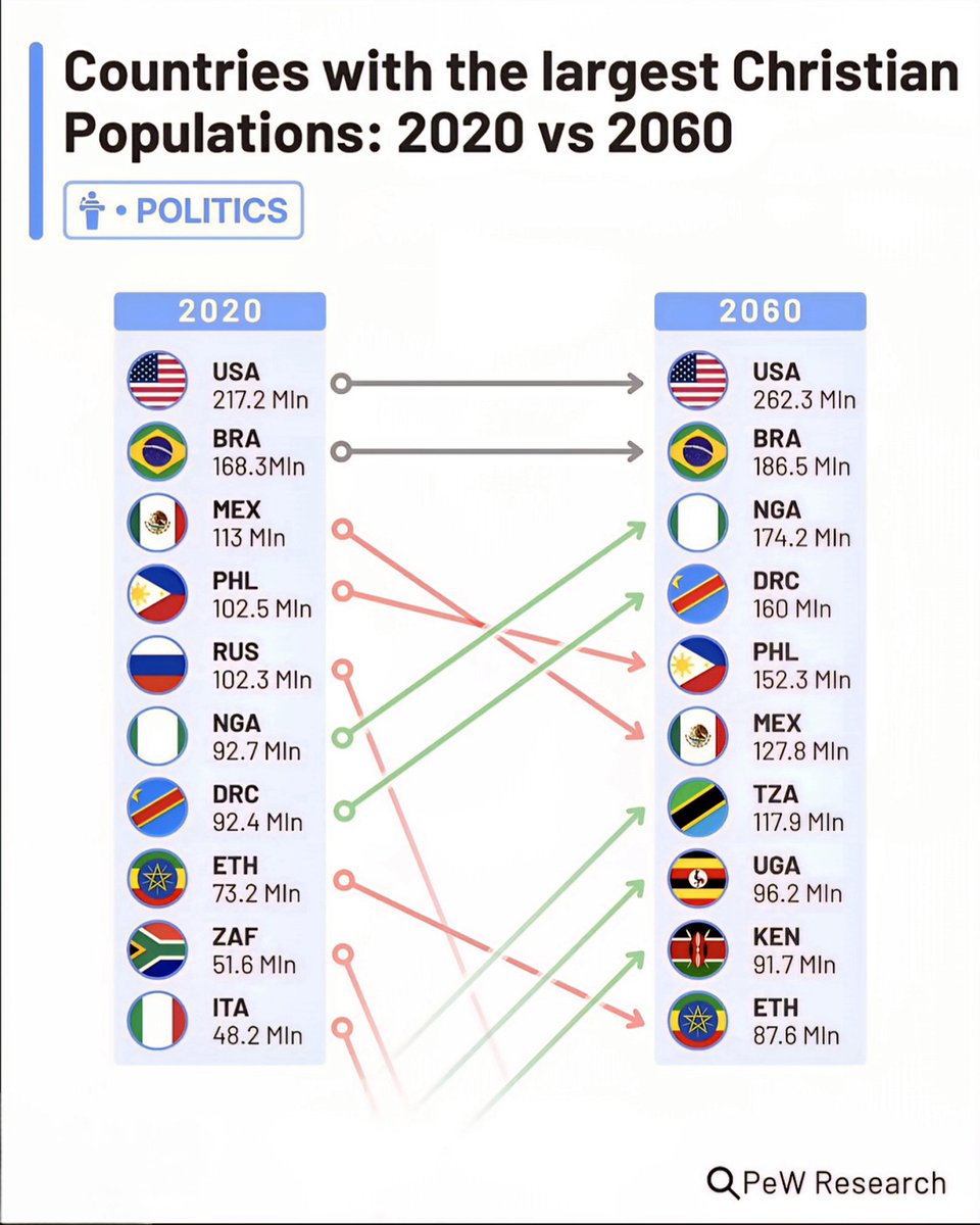 The global Christian landscape is shifting rapidly, with African nations leading the demographic surge. Countries like Nigeria, DRC, Ethiopia, and Kenya are expected to dominate the world stage in terms of Christian population counts by 2060, impacting global religious, cultural, and political dynamics. Meanwhile, traditional centers in Europe and parts of Asia continue to experience stagnation or decline, highlighting changing patterns of faith worldwide.