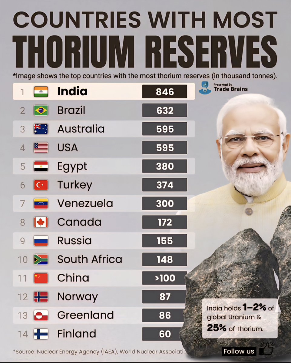 Turkey follows closely, with approximately 374,000 tons of thorium, positioning itself as a potential regional hub for thorium-based nuclear reactors, especially as it pushes for energy independence and aims to reduce reliance on imported fossil fuels.