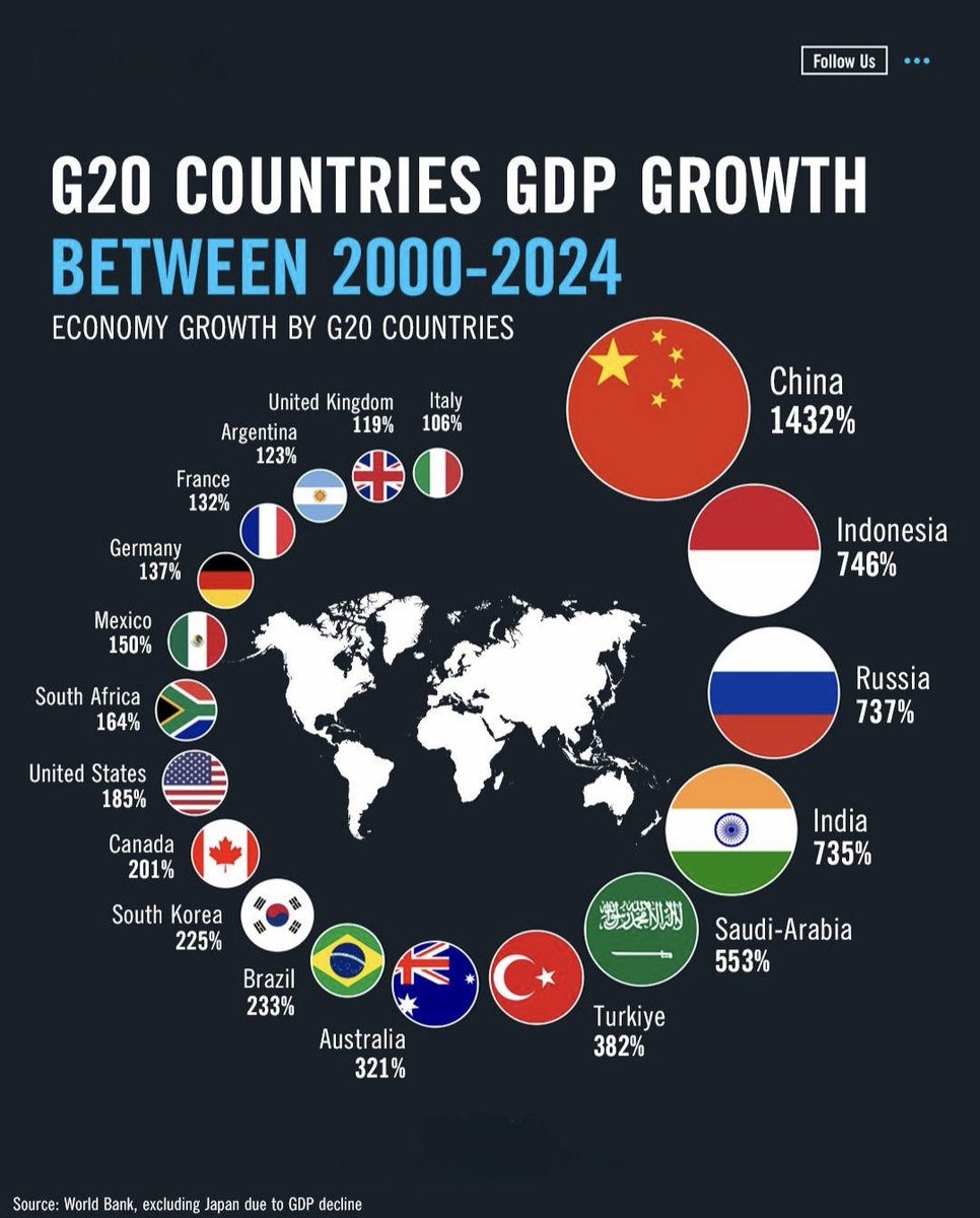 The global economy has experienced varied growth patterns over the past two decades. G20 nations, representing some of the world’s largest economies, show striking differences in their gross domestic product (GDP) expansion from 2000 to 2024. Here’s a comprehensive look at the staggering growth figures across these influential countries.