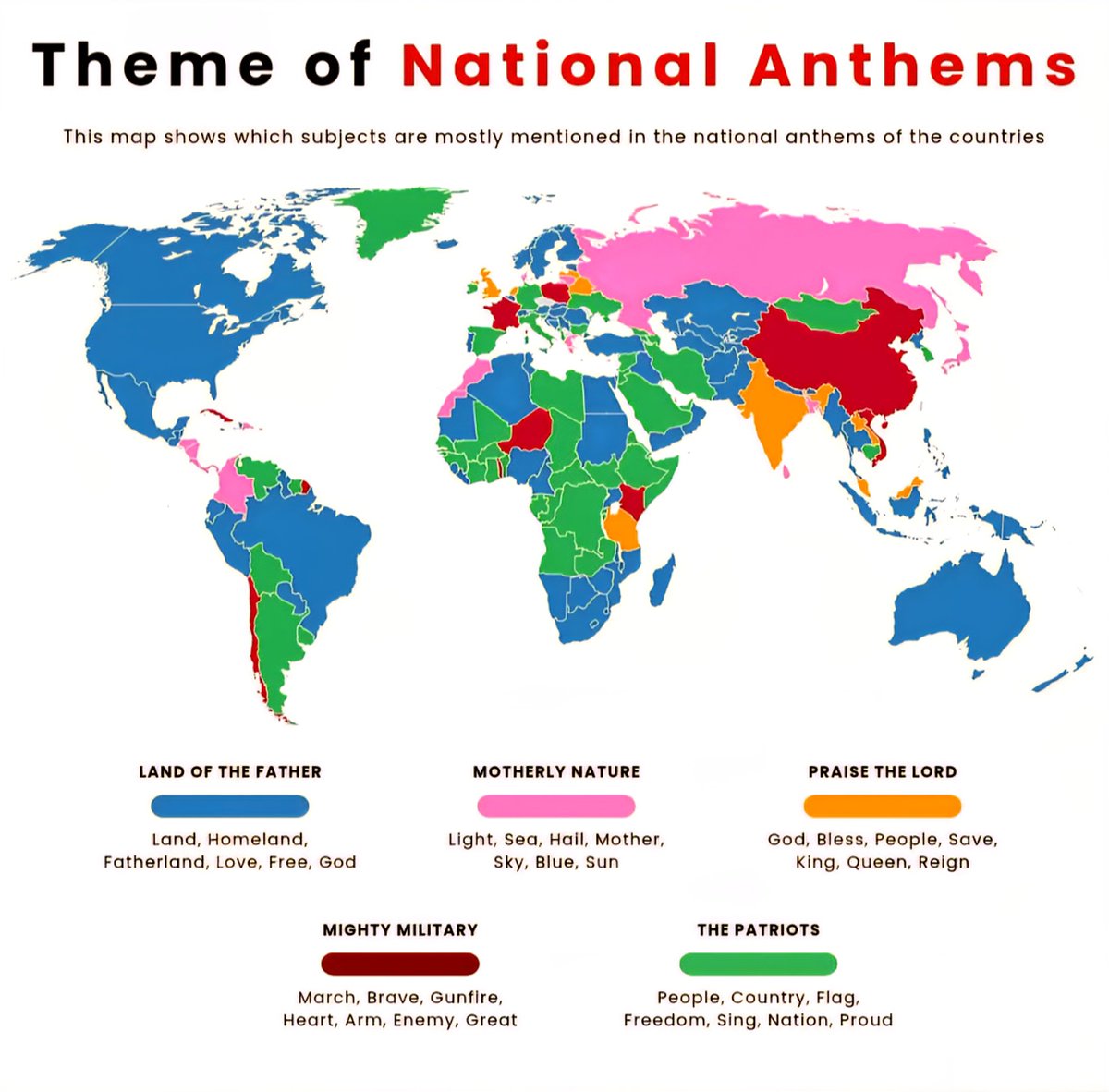 In 2025, it is fascinating to see how these themes continue to resonate across diverse cultures, uniting them through shared values of homeland, nature, divine blessing, strength, and pride, echoing in the melodies of national anthems worldwide.