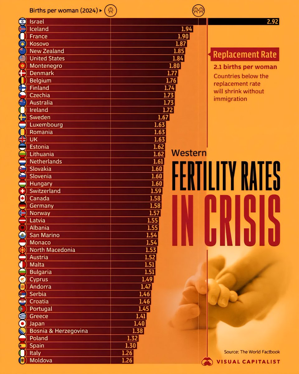 At 2.92 births per woman, Israel remains the standout among Western countries, surpassing the replacement rate of 2.1. Despite ongoing demographic concerns worldwide, Israel’s relatively high fertility rate reflects unique cultural and policy factors that support family growth.
