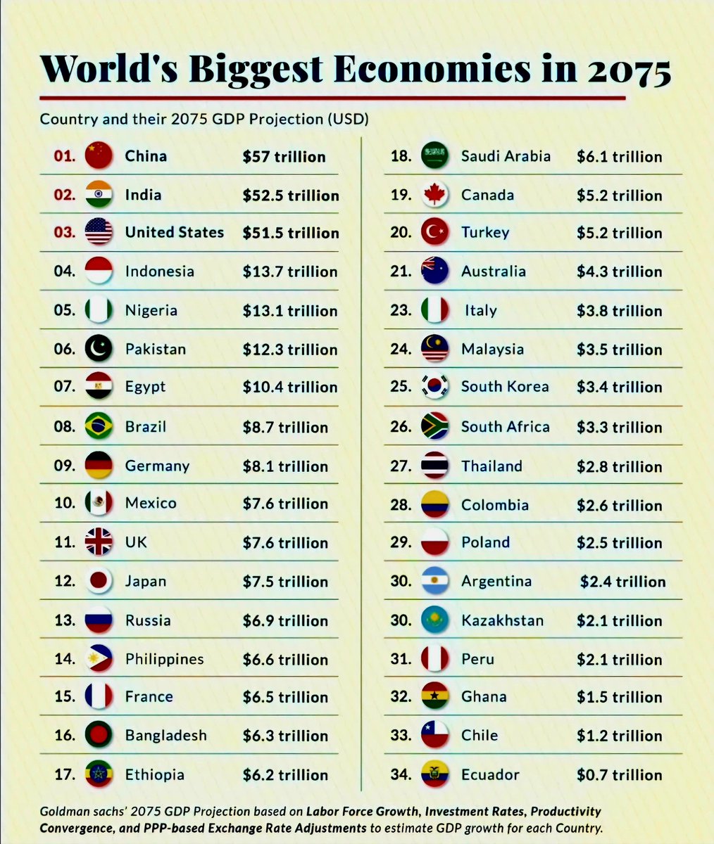 Top 34 Economies Projected for 2075: Who Will Lead the Global Market?