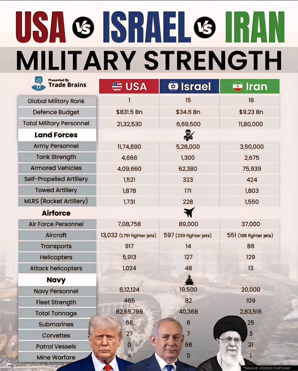 While the U.S. maintains a clear technological and numerical dominance, Israel’s strategic advantages lie in its intelligence and missile defense systems. Iran, meanwhile, positions itself as a regional power through asymmetric warfare tactics and missile technology.