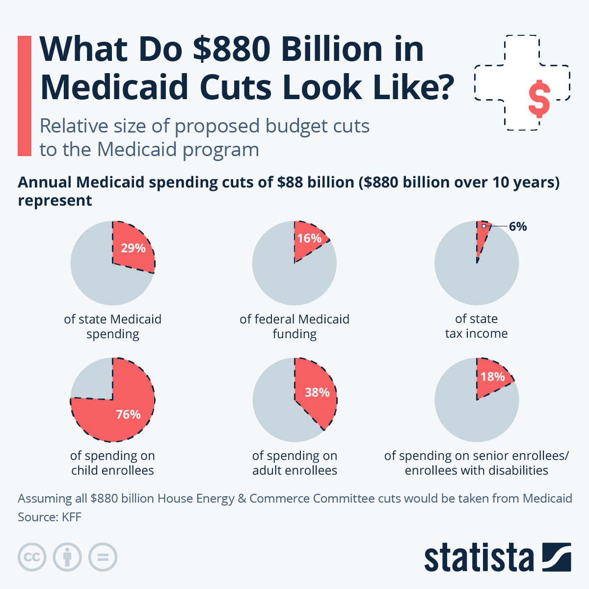 KFF’nin hesaplamaları, Temsilciler Meclisi Enerji ve Ticaret Komitesinin önerdiği kesintilerin tamamının Medicaid’ten geleceğini varsayıyor. Ancak, New York Times’a göre, gerçekte bu kesintilerin yaklaşık 715 milyar dolar olacağı ve diğer kesintilerin otomobil düzenlemelerinin kaldırılmasından gelebileceği belirtiliyor. Öneri, eyaletlerin Medicaid katkılarını ödemekten tamamen vazgeçmekten kaçınsa da, birçok alıcının kapsamını kaybetmesine sebep olabilecek ek kurallar, gereklilikler ve doğrulama süreçlerini getirmekte.