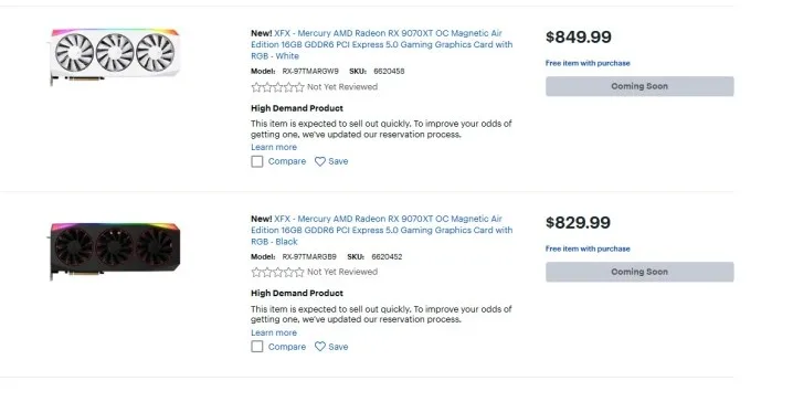 Even though the cards aren’t officially available for purchase yet, Best Buy has a variety of RX 9070 XT and non-XT models listed, although they’re labeled as “coming soon.”