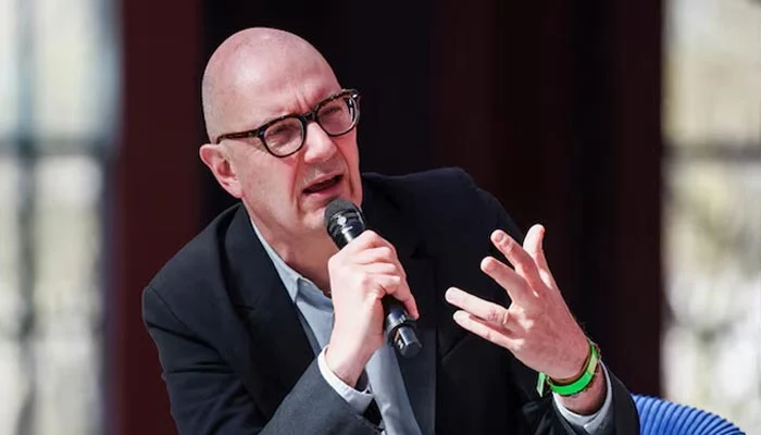 Roland Lescure, a member of parliament from the Ensemble pour la République (EPR) faction, delivers remarks at a rally for the Renaissance party in Saint-Denis near Paris on April 6, 2025. — Reuters