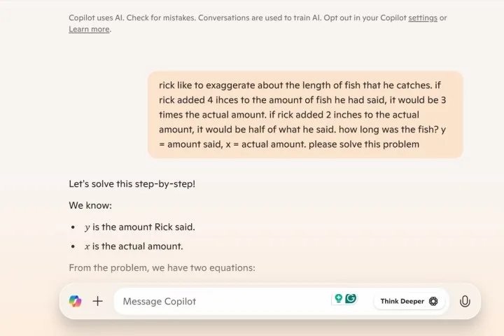 To test the feature, I posed a mathematics problem typically found on the SAT. On my initial try without the Think Deeper toggle activated, Copilot provided a clear but straightforward response detailing the solution. However, when I enabled the Think Deeper option, the results were significantly more comprehensive—Copilot not only delivered the correct answer but also included a psychological assessment of the topic, historical context surrounding the problem, and intriguing facts related to it. Overall, the depth of this response far exceeded the initial explanation.