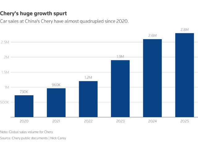 Chery’s international sales have skyrocketed in recent years, nearly quadrupling from 2020 to 2025. Nonetheless, it still trails behind domestic rival BYD, which sold 4.6 million vehicles in 2025 and has become the fifth-largest automaker globally by volume.